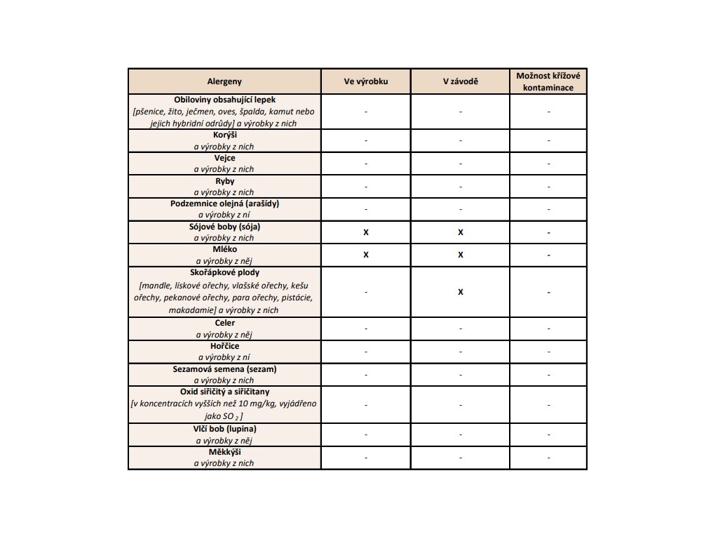 Energetická hodnota na 100 g výrobku 2374 kJ / 569 kcal